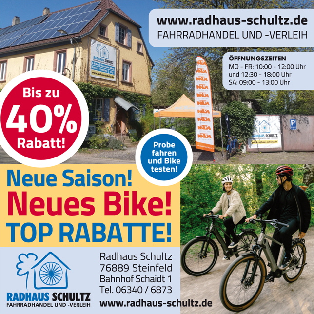 Willkommen bei Radhaus Schultz, Ihrem Fahrradhandel und -verleih in Steinfeld, Südliche Weinstraße!
